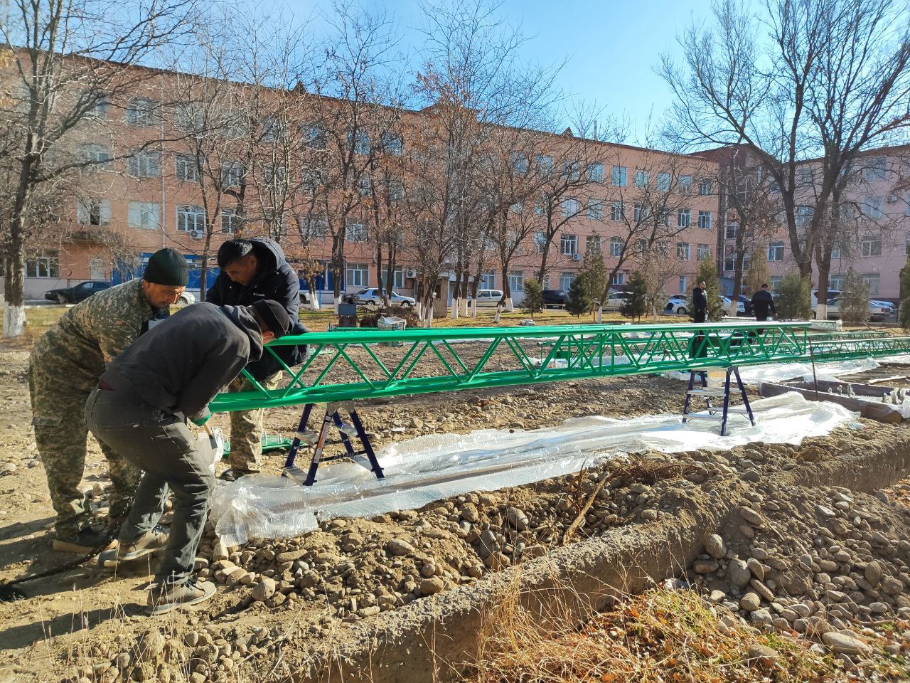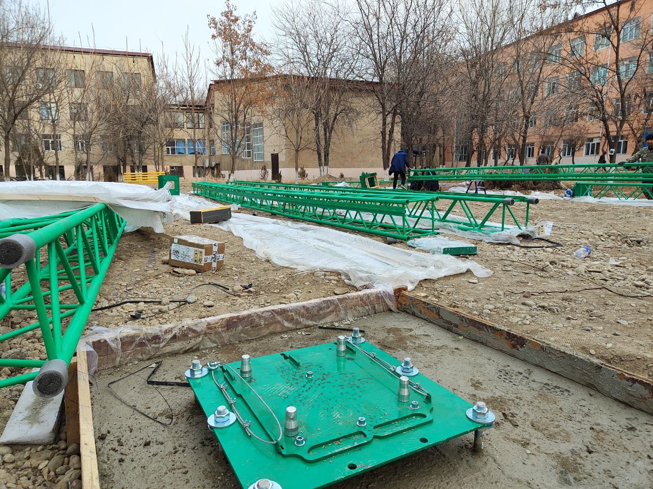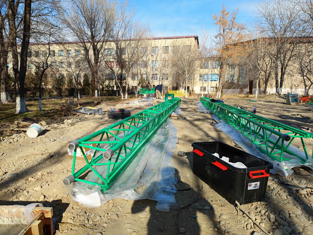 Қазіргі уақытта іргетас тіректерін орнату, рамалық элементтерді монтаждау, фермалар мен байланыстырушы блоктарды жинау жұмыстары жүргізілуде. Жұмыстарды 2025 жылдың желтоқсан айының бірінші онкүндігінде аяқтау жоспарлануда.